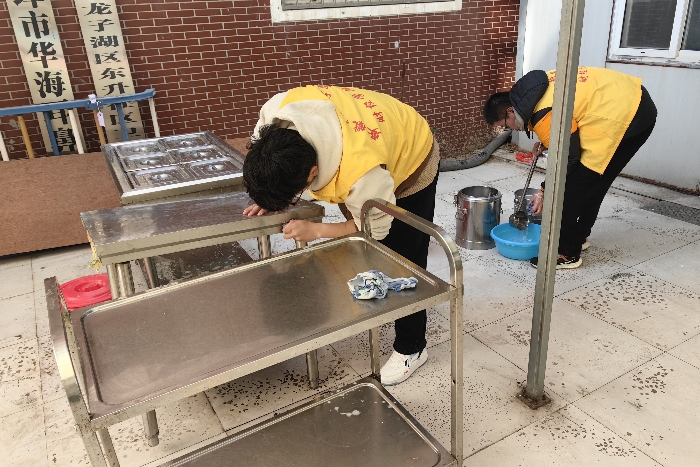 活动中,大家分配好三部分工作任务,各司其职,分别拖地、擦窗户、打扫楼梯。卫生打扫完后,同学们陪伴老人聊天、谈心。最后,同学们和爷爷奶奶以及养老院工作人员一同拍照留念。