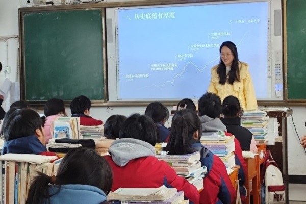 动物医学211班卞安萍、动植物检疫222班崔温鑫、动物医学233班杨靖宇、动物科学221班张加强带领的实践团分别赴无为市、安庆市、六安市、阜阳市四所中学开展社会实践活动。实践团成员拜访了班主任及任课老师,向母校老师汇报了大学生活和学习情况,围绕“教学历史悠久,发展前景广阔”向高二、高三班级宣讲介绍了博鱼官方网页版_博鱼(中国)的发展成就、优秀校友、师资力量以及有温度的人才培养体系,并就自身升学经历作深入分享。