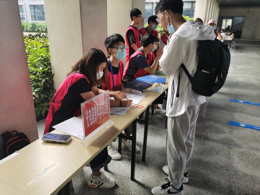 此次迎新工作中,电气与电子工程学院设置体温检测及行李消毒组、健康码行程查验组、检录组、材料收集组、行李协运组等多个志愿服务组。新生们严格遵守校园疫情防控要求,有序的出示健康码、行程码核验、核酸检测报告及到校通行码。在志愿者的带领下,完成一系列报到工作。在引导新生去宿舍的途中,志愿者们会主动向新生们介绍学校概况,大学校园的学习与生活特点。一张张笑脸,一句句贴心的话,拉近彼此距离,让新生们感受到学院的温暖与关怀。