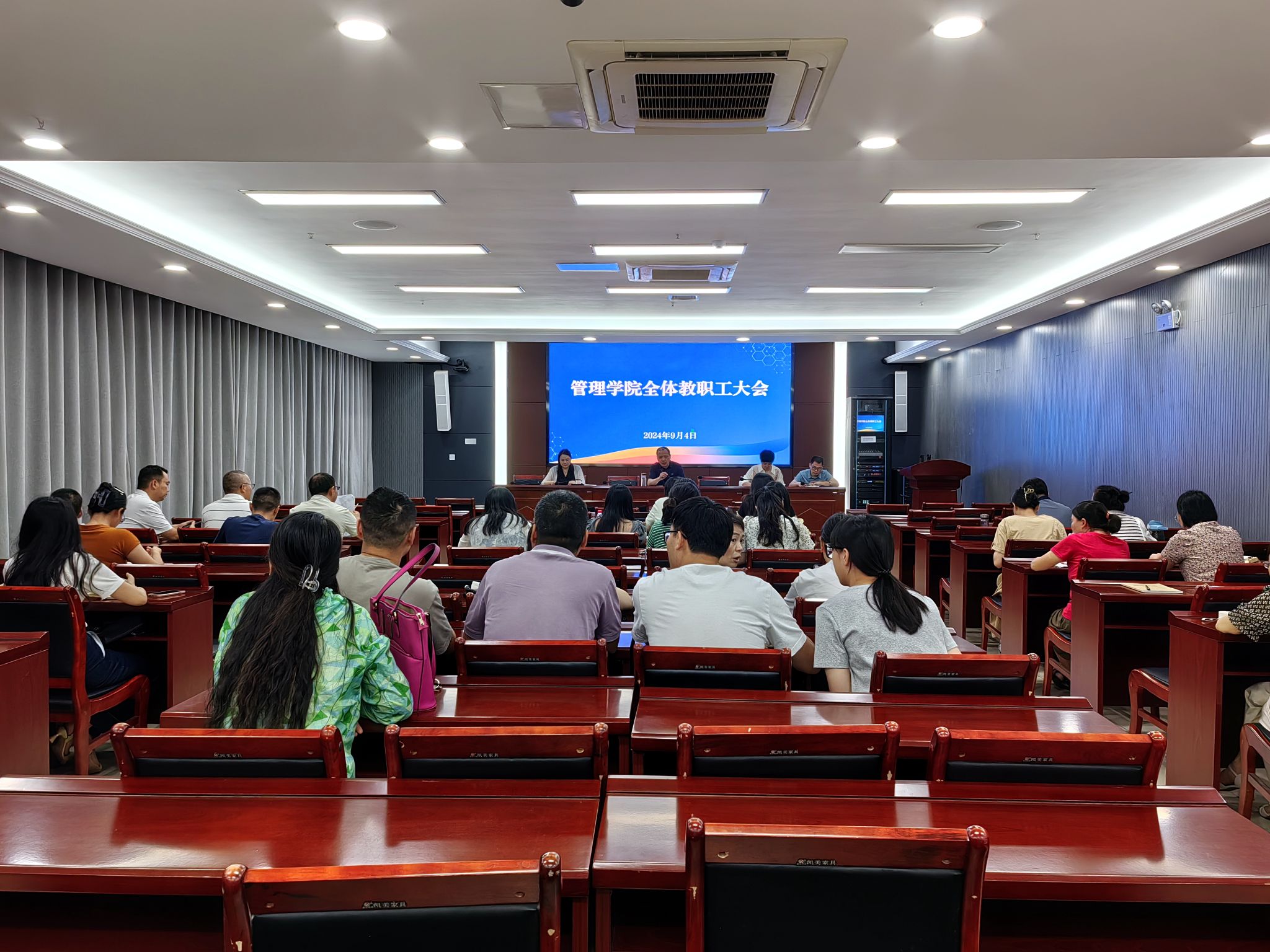 9月4日下午,管理学院在西附楼111会议室召开全体教职工大会,通报暑期重点工作进展情况,部署安排新学期重点工作。学院党政领导及全体教职工参加会议,会议由学院党委书记丁景良主持。