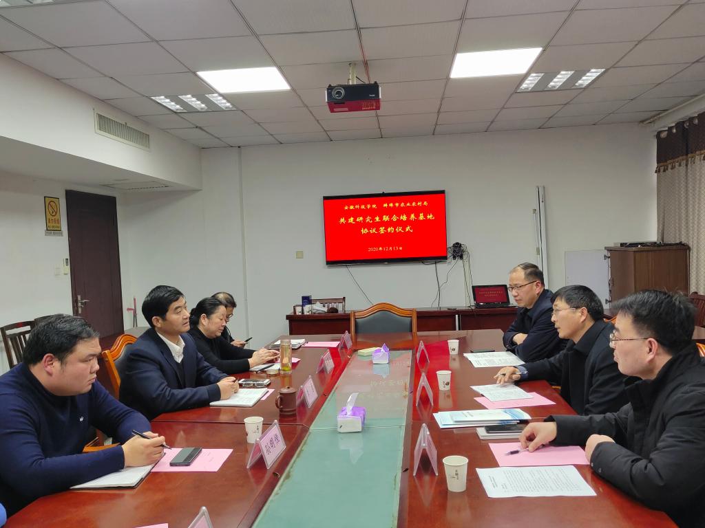 为进一步深化产教融合专业学位研究生培养模式改革,根据国家和安徽省有关文件精神,本着“资源共享,优势互补,相互协作,互利共赢”的原则,12月13日下午,研究生处处长张春雨、管理学院党委书记丁景良、管理学院院长赵伟峰等一行赴蚌埠市农业农村局洽谈共建研究生联合培养基地事宜,受到农业农村局局长李勇、副局长王书华、孙明恒等的热情接待。