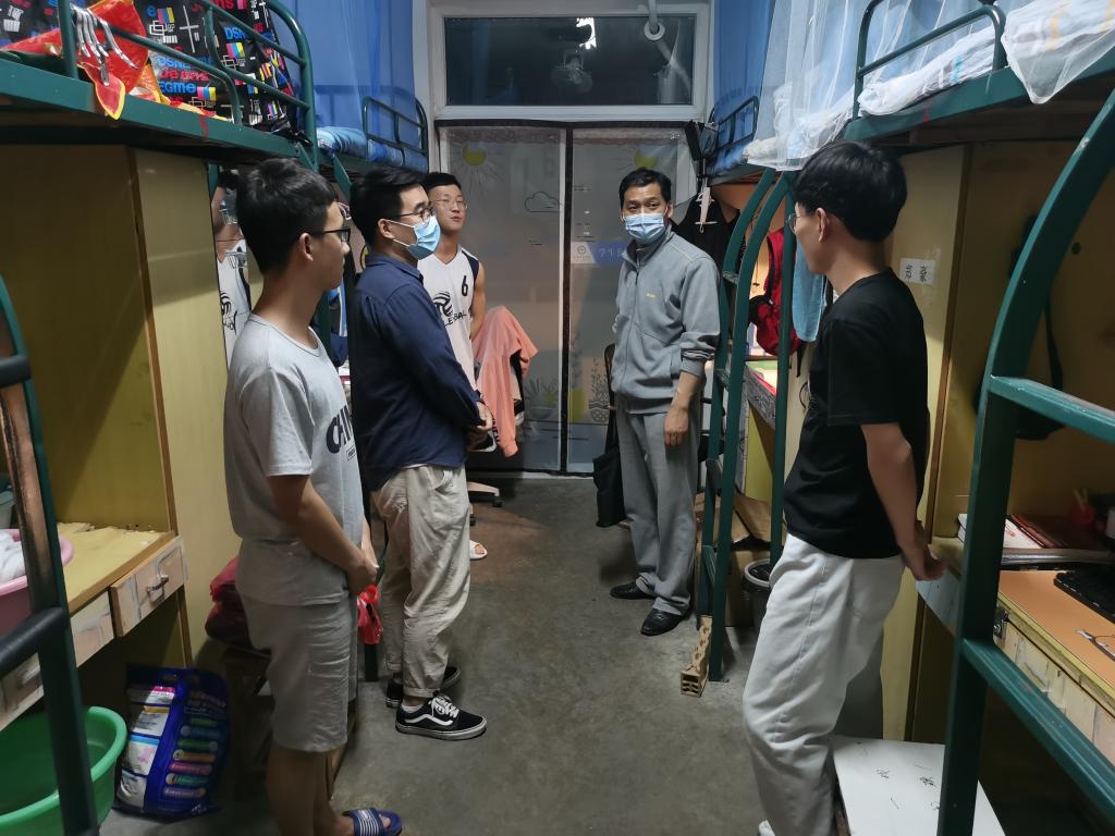 为进一步督促推进学生宿舍学风和安全文明建设,做实学生宿舍安全隐患排查,5月5日晚10点,机械工程学院党委副书记、纪委书记张程带领学院副处级辅导员开金苗、辅导员孟凡生、张立亮和邱杰深入东8栋学生宿舍楼逐层逐个开展宿舍学风和安全文明建设突击检查。