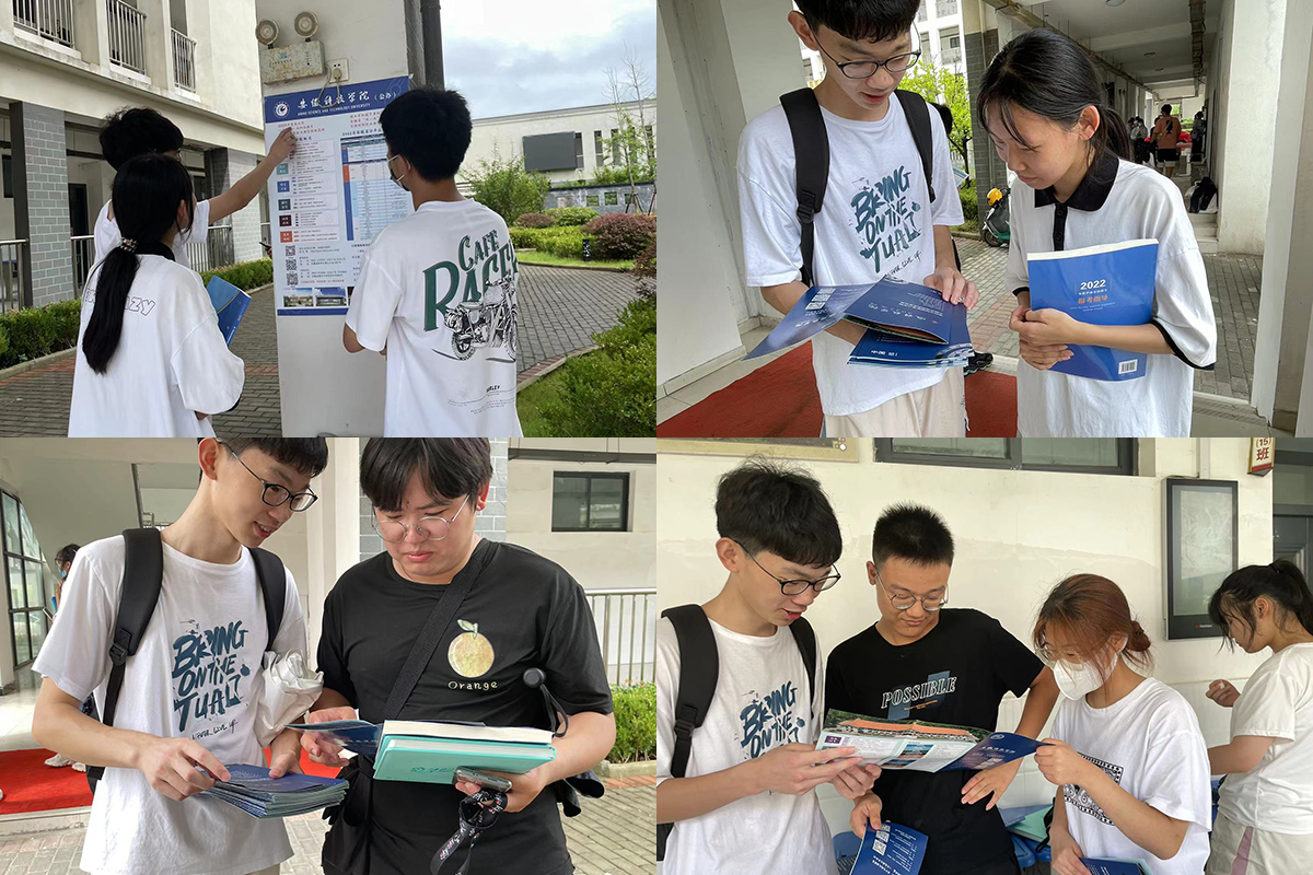 之后有成绩符合的学弟学妹前来询问详细情况,实践团队成员也是根据实际情况来为他们答疑解惑。在张贴海报、发放宣传折页后,多位学生家长询问关于安科的详细信息,实践团队的成员为他们讲解安科的发展史和这几年的成绩,分享在安科学习和生活的日常。
