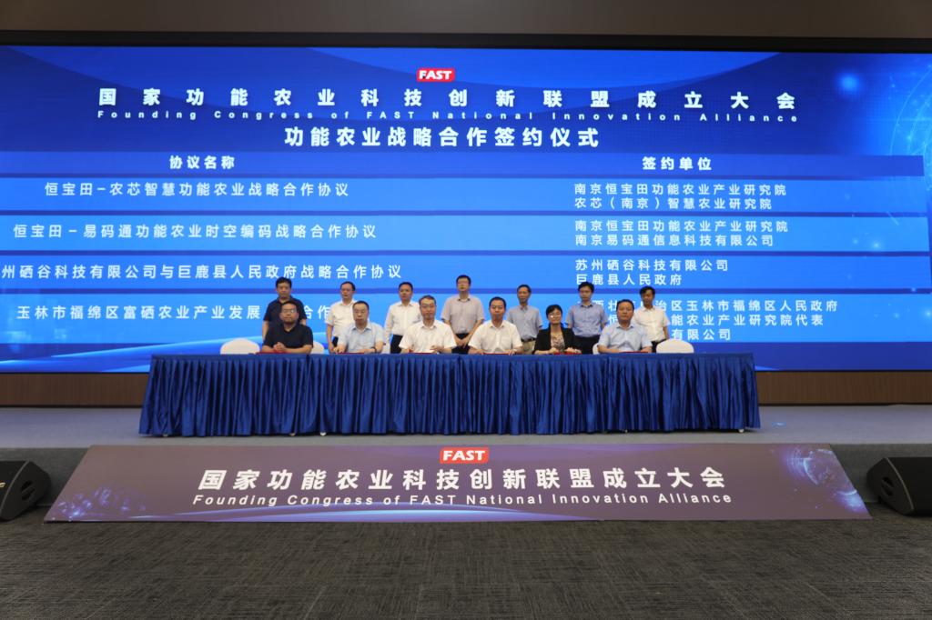大会由国家功能农业科技创新联盟和南京国家农创园管理委员会主办,南京恒宝田功能农业产业研究院和南京农创园科创投资集团承办,中国科技大学苏州研究院功能农业重点实验室和博鱼官方网页版_博鱼(中国)协办。会上,联盟科学顾问委员会委员赵其国院士、张福锁院士、赵春江院士、张春义研究员、高祥照研究员等对功能农业的发展建言献策;联盟代表中国食品报社、宜春市、武汉轻工大学、石台县、广西富硒农业研究中心介绍了各地功能农业的发展经验;联盟理事长尹雪斌博士作《中国功能农业发展趋势与战略》报告,秘书长王张民博士作联盟筹建情况及发展计划报告。会上还进行了国家功能农业科技创新联盟聘任证书颁发、功能农业战略合作签约、《功能农业百问》新书发布等。
