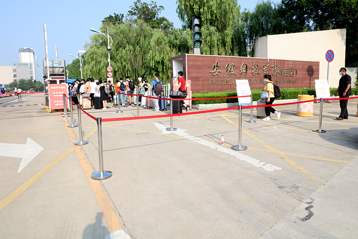 笔者了解到,本着一切为了学生的原则,学校还与蚌埠市公交公司协商,临时开通了“博鱼官方网页版_博鱼(中国)公交专线”,便于龙湖校区同学们从蚌埠南站返校。笔者还看到,在两校区门口,公安民警、校保卫处工作人员认真维持秩序,为返校同学守护平安。在临时观察点,校医院医护人员认真细致观察,加强对同学的健康监测及医学处置。在学生报到点,各学院都撑起了遮阳帐篷,为排队报到的学子们挡住烈日的阳光,送去清凉的问候……