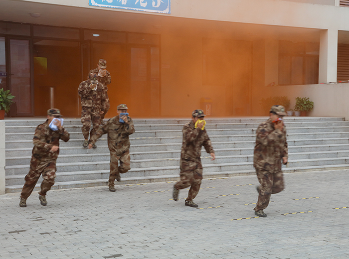 在疏散演练中,各连军训教官为学生讲解消防应急疏散知识及注意事项,安排各学院辅导员和物业管理人员进行疏散路线引导,安排医务人员和应急队伍进行现场保障,组织消防维保和专业人员营造演练场景,校地军各方紧密配合,全体大学生新生积极配合,用事先准备湿毛巾等逃生用品,在急促的消防警报声中,俯身快速穿过演练“浓烟”,有序疏散到室外空旷地带。4栋12层学生公寓楼新生用时4分38秒全部疏散完毕。