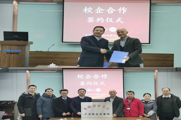 黄远友一行在参观安徽永成电子机械技术有限公司生产车间和企业展厅后,对该公司敢为人先、引领行业发展的首创精神和长期坚持“创新、稳健、尊重、卓越”的经营发展理念给予了充分肯定。黄远友代表学校与该公司董事长傅正兵签订了《产学研合作协议书》和《农业硕士专业学位研究生联合培养协议》,并举行了“博鱼官方网页版_博鱼(中国)产学研合作基地”授牌仪式。