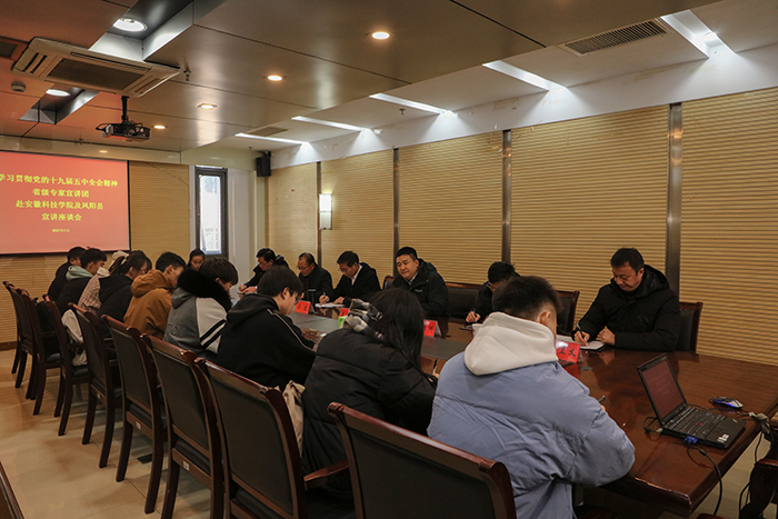 1月8日下午,学校党委理论学习中心组邀请学习贯彻党的十九届五中全会精神省级专家宣讲团成员、省林业局团委书记秦国伟作宣讲报告。校党政领导蒋德勤、李震、韦文联、黄远友、王强、黄友锐出席报告会。党委书记蒋德勤主持报告会。