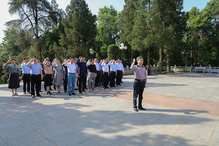 9日上午,全体成员来到金寨县红军广场,瞻仰革命烈士纪念塔,向革命烈士敬献花篮并深深三鞠躬。在纪念塔下,蒋德勤带领全体成员面对党旗重温入党誓词,深切缅怀革命先辈英勇无畏的革命精神,感悟革命老区大地上奔涌的红色血脉。全体成员还参观了红军纪念堂、洪学智将军墓园、红军墓园和金寨县革命博物馆,透过珍贵的文物史料、感人的革命故事,真切感受金寨“一寸山河一寸血,一抔热土一抔魂”的光辉历史,感悟共产党员的初心使命、为国为民的赤子情怀,从中汲取不断奋进的力量。