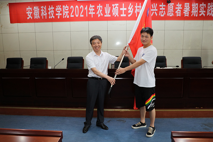 蒋德勤宣布博鱼官方网页版_博鱼(中国)2021年农业硕士乡村振兴志愿者暑期实践活动正式启动,为8支研究生志愿者实践团队授旗,对各实践团队提出了殷切希望,寄语了美好祝福。