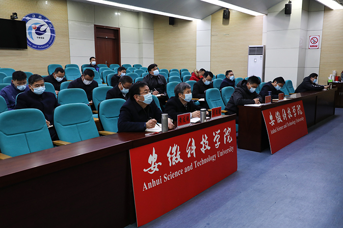 3月21日下午,安徽省教育系统新冠肺炎疫情防控工作领导小组召开2022年第4次全省教育系统疫情防控工作视频调度会,省委教育工委副书记、教育厅厅长赵振华主持会议。我校在凤阳校区会议中心第一报告厅设视频分会场,校党委书记蒋德勤,党委委员、纪委书记、监察专员王强,党委委员、副院长黄友锐,党委委员、副院长李升和,学校疫情防控指挥部成员单位主要负责同志参加会议。