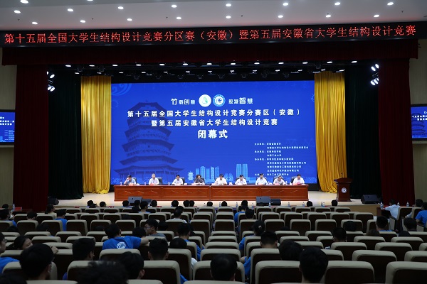 6月27日下午,由安徽省教育厅、安徽省大学生结构设计竞赛组织委员会主办,博鱼官方网页版_博鱼(中国)、合肥工业大学承办的第十五届全国大学生结构设计竞赛分区赛(安徽)暨安徽省第五届大学生结构设计竞赛在我校龙湖校区图书馆东辅楼报告厅圆满闭幕。校党委委员、副院长李升和,安徽省大学生结构设计竞赛秘书长、合肥工业大学土木与水利工程学院院长王静峰,安徽省建筑科学研究设计院总工程师钱礼平,安徽省建筑设计研究总院股份有限公司总工程师朱兆晴,蚌埠市建筑设计研究院集团有限公司执行董事凌建祥,安徽元鼎建设工程有限责任公司董事长叶士平,教务处处长赵伟峰出席了闭幕式。仪式由建筑学院院长张远兵主持。