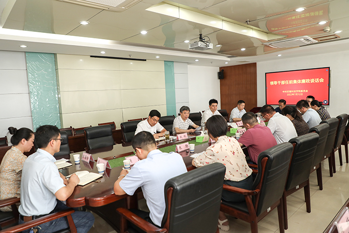 7月12日上午,学校召开新任职领导干部任前集体廉政谈话会,党委书记蒋德勤出席会议并讲话,会议由党委委员、纪委书记、监察专员王强主持。