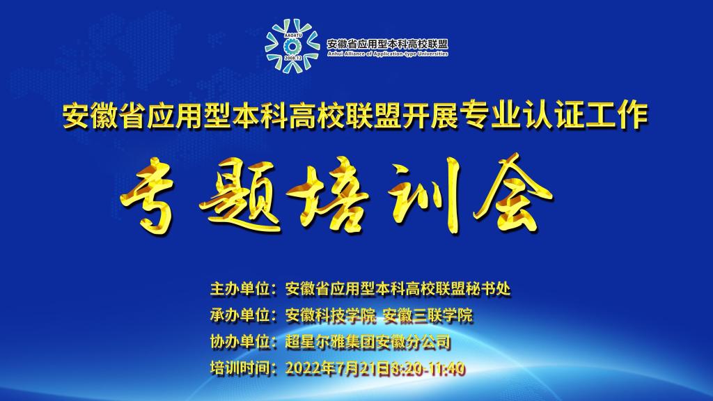 7月21日上午,由安徽省应用型本科高校联盟主办,博鱼官方网页版_博鱼(中国)、安徽三联学院承办,超星尔雅集团安徽分公司协办的安徽省应用型本科高校联盟专业认证专题培训会在我校成功举行。本次会议采用直播形式进行线上培训,来自安徽省应用型本科联盟24所高校负责专业认证工作的职能部门负责人,相关专业负责人、骨干教师和相关工作人员近600人参会。会议由教务处处长赵伟峰主持。