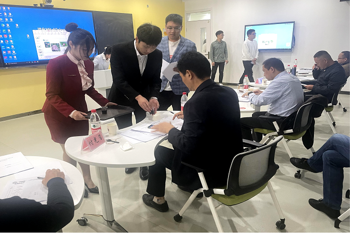 大赛现场,精彩纷呈。产品展示区域,山药茶膏系列糕点、“好享梨”水晶翠梨片、独具“酱”心、“撒椒卖辣”香脆椒、“青舫玉饮”西瓜皮酸奶、智芝饼等特色创新产品一一整齐陈列,赏心赏目,让人叹为观止。前来参观和品尝的同学都赞不绝口:“这造型太精美了!”“西瓜皮也能利用制作成营养美食,真没想到!”“你看,这菊花酥在烤制的时候像菊花一样缓缓绽放”“‘二氢杨梅解酒脆’巧克力还有解酒保肝功效呢”“各类产品真的是异彩纷呈,让人大开眼界!”比赛现场,每个团队都在紧张而有序地展开汇报,各团队负责人分别从研发缘由、研发过程、产品创新点、优势及市场前景等几个方面对产品进行了丰富细致的介绍,并现场回答了评委提出的各类问题。经过紧张激烈的角逐,“青舫玉饮”等四个团队斩获一等奖,“二氢杨梅醒酒脆”等九个团队获得二等奖,“四季予你”等十三个团队获得三等奖。