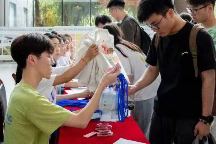 作为本次专项活动的东道主,实践团队成员一早便化身志愿者,前往酒店门外迎接来自全国各地高校的社会实践团队。同学们以积极热情、细致入微的服务态度,帮着远道而来的实践团队拿行李箱、办理登记、领取物料、入住酒店,耐心地给他们答疑解惑,彰显了安科志愿者积极向上的精神风貌。