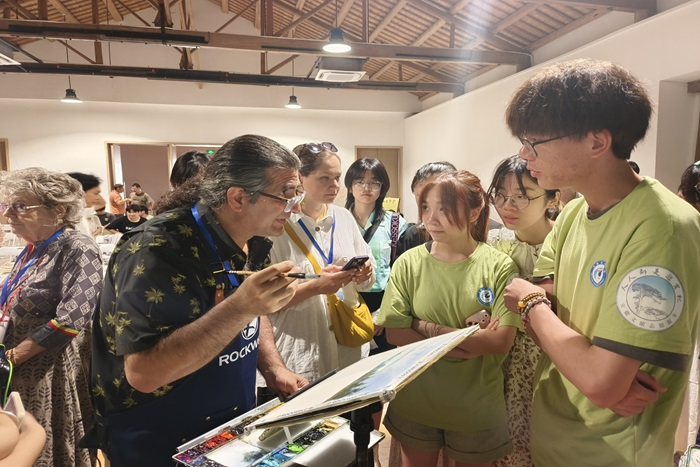 7月11日上午,建筑学院“筑乡兴遗”国家级中华文化传承团赴黄山市黟县西递村,参加2024黟县西递、宏村国际水彩艺术季国际名家作品展。此次活动,传承团与来自20个国家的48位水彩艺术大师欢聚一堂,以画为媒,找寻文化交融的无限可能。