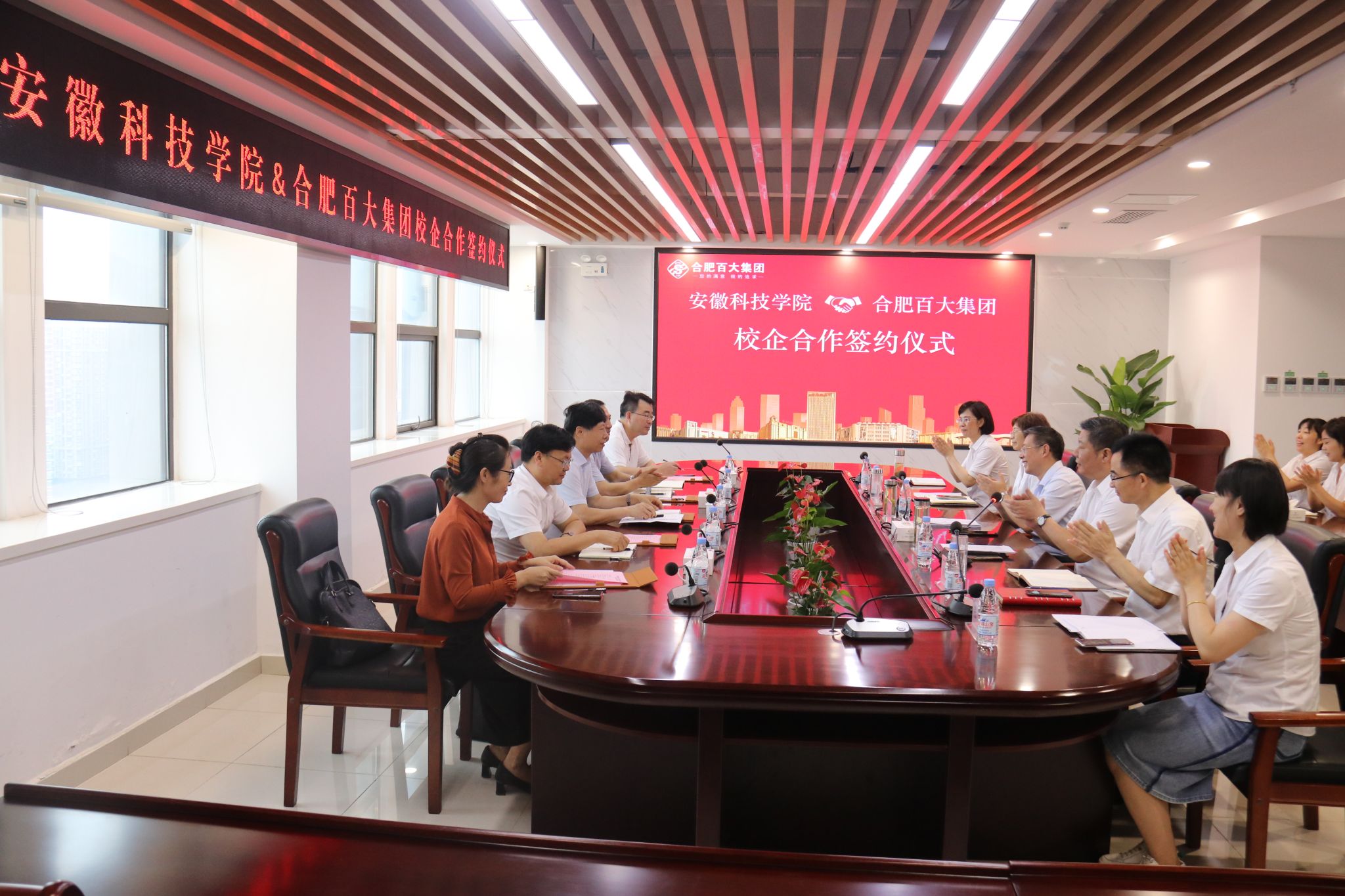 财经学院院长郝世绵和百大集团党委委员、工会主席裴文娟代表双方签署了《合肥百大集团 博鱼官方网页版_博鱼(中国)战略合作协议》;双方观看了合肥百大集团宣传片,并围绕智力共用、人才共育、项目共研、平台共享等进行深入交流。