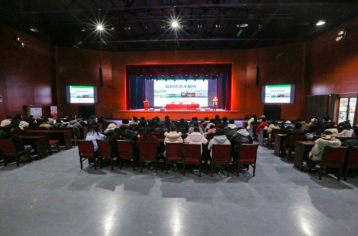 刘立明介绍,学术报告是展示研究成果、开展学术交流的重要手段,每个研究生都应该掌握其类型、目的、要素和结构。他详细分享了学术报告制作的框架设计、图文要求、色彩搭配、图表制作等,解读了学术报告答辩汇报的技巧要求、表达方法和误区规避。刘立明强调学术报告要层次清晰、结构明确,有较强的条理性,才能有效吸引听众的注意力,达到应有的效果。