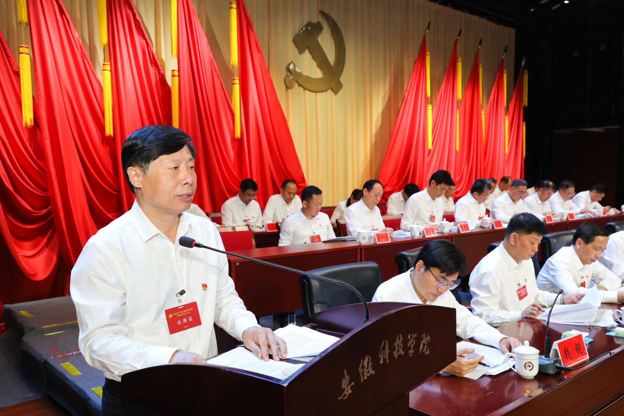 5月27日上午,中国共产党博鱼官方网页版_博鱼(中国)第四次代表大会在凤阳校区大学生活动中心隆重召开。安徽省委教育工委委员、省教育厅副厅长徐静平,滁州市委副书记金力,安徽省委教育工委组织干部处副处长杨南成,校领导时伟、李升和、曹付忠、王孝义、赵伟峰、王玉和、彭庆刚出席会议。学校的老领导,民主党派代表和有关方面代表等,不是代表的处级干部作为特邀人员、列席人员参加大会。