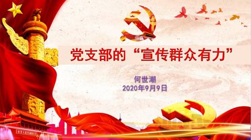 结合自身党建工作经验,何世潮以支部命题“宣传群众有力”为关键词,从党支部的地位、作用、基本任务和党建“双创”样板支部“七个有力”的指标解读论述了“什么是‘宣传群众有力’”;从“凡事宣传先”、宣传工作在党的工作中的重要性、《中国共产党宣传工作条例》提供的保障、全国宣传思想工作会议提供的遵循、作为党的“耳目手足”和“神经末梢”的党支部在党的宣传工作中发挥的作用等论述了“为什么要‘宣传群众有力’”;从立场正确、材料丰富、注重时效、方法多元、情感真挚、学以致用和支部领导七个方面论述了“如何做好‘宣传群众有力’”。