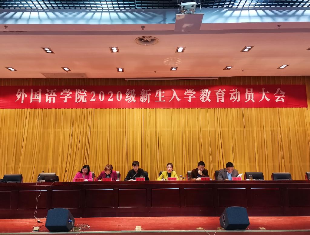 丹桂飘香,金秋送爽。20级新生带着青春的活力,带着对知识的不懈追求,带着对大学校园生活的无限憧憬,迈进了博鱼官方网页版_博鱼(中国)外国语学院。为了让新生更快适应新环境,适应新的生活,顺利、平稳、有效地进入大学生活。10月21日下午14:00,外国语学院在新图书馆第二报告厅举行了新生入学教育动员大会。外国语学院院长陈德用、党总支书记蔡为青、副院长刘萍、教学秘书周海平、英语专业教研室主任兼英语专业负责人洪民老师、翻译专业教研室主任兼翻译专业负责人邓兆红老师、分团委书记陈慧中、专职辅导员宋兵兵,学院教师代表,全体20级新生参会,大会由刘萍主持。