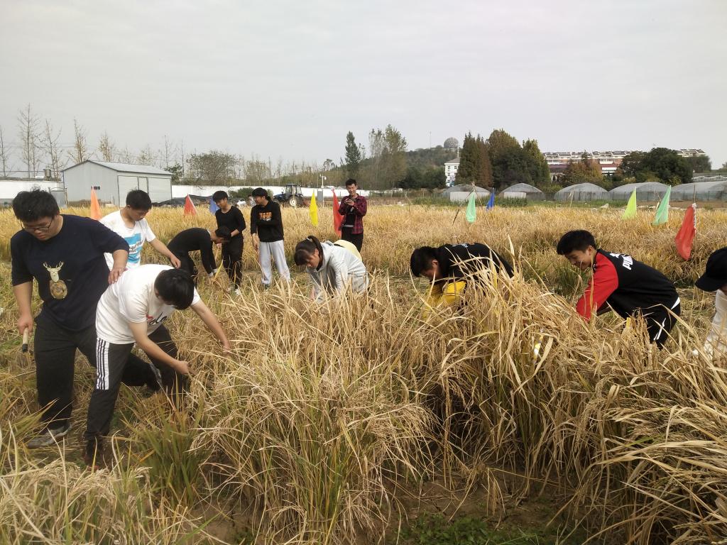 10月31日,农学院以“我为校庆添光彩,农科学子在行动”为主题,组织2020级新生部分班级同学在种植科技园水稻试验田开展劳动教育。