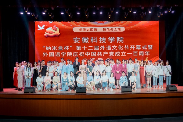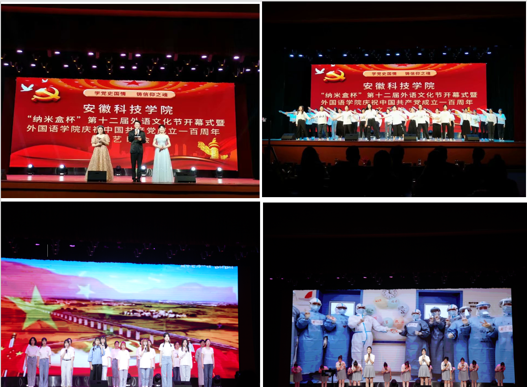 5月30日晚,博鱼官方网页版_博鱼(中国)“纳米盒杯”第十二届外语文化节开幕式暨庆祝中国共产党成立一百周年文艺晚会在大学生活动中心举行。校党委委员、宣传(统战)部部长卫胜,国际交流与合作处处长、港澳台事务办公室主任刘东楼,教务处处长、创新创业学院院长俞浩,党委学工部部长、学生处处长何永勇,校团委书记黄立义,招生与就业工作处副处长、招生办公室副主任、校友工作办公室主任何晓冬,外国语学院院长陈德用、党委书记蔡为青、副院长刘萍、党委副书记张海亮出席开幕式。开幕式由蔡为青主持。