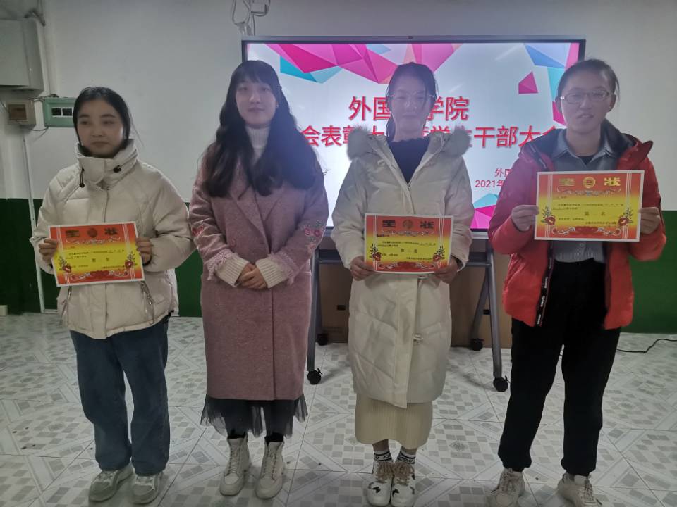 在干部大会上,陈慧中、宋兵兵、张薇薇分别布置了各自分管的工作,如:奖学金使用管理、安科E创项目申报、安全稳定、疫情防控、学风建设、意识形态、外语文化节闭幕式晚会、学籍异动等内容。在表彰会议上,与会老师们为获奖运动员颁发奖状并合影留念。宋兵兵宣读了《外国语学院学生在博鱼官方网页版_博鱼(中国)第30届运动会的通报表扬名单》,张薇薇宣读《外国语学院在校第30届运动会中获奖运动员名单》,院学生会执行主席桂纪昌对本次校运动会进行了总结发言。