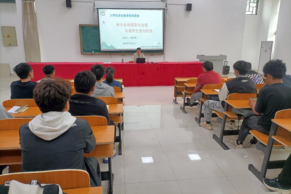 本讲座分为国家安全教育和大学生安全教育两部分。在国家安全教育方面,谢宜勤介绍了国家安全概念、体系构成,强调了国家安全现实基础和重大意义,重点解读了总体国家安全观五大要素,并结合大学生实际,介绍了大学生日常学习和工作中如何维护国家安全,并要求全体同学树牢总体国家安全观,加强“国家安全,人人有责”意识。在大学生安全教育方面,谢宜勤进一步介绍意识形态安全、网络安全和疫情防控下的学生安全等教育,分析了当前意识形态、网络世界和疫情防控所面临的问题和挑战,要求同学们一要坚定理想信念,进一步增强“四个意识”、坚定“四个自信”、做到“两个维护”;二要在日常学习和工作中,把社会主义核心价值观内化于心,外化于行,担负起“人人为我,我为人人”的时代责任;三要正确使用网络,规范网络行为,严防网络电信诈骗;四要在疫情防控期间,思想上高度重视,行为上严格遵守疫情防控各项规定和要求,以积极健康的心态面对疫情。