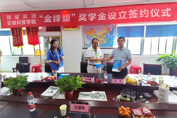 在滁访企拓岗、调研期间,陈丰一行首先来到金锋馥(滁州)输送机械有限公司,受到董事长刘承翰、人力资源总监王俊静热烈欢迎,随后双方就毕业生就业、毕业实习及开展产学研合作等方面进行了深入的交流,并就《金锋馥(滁州)科技股份有限公司、博鱼官方网页版_博鱼(中国)机械工程学院关于设置“金锋馥”奖学金实施办法》达成一致,签署了合作协议。