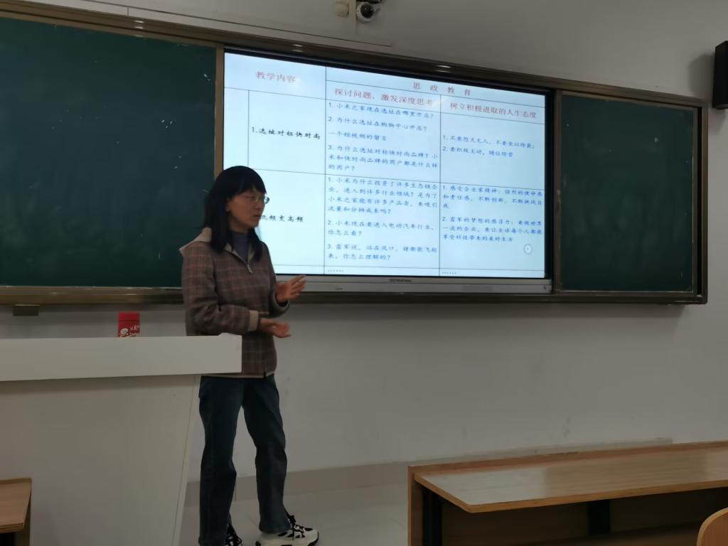 营销系主任刘宗飞对此次汇报进行了点评,他指出几位老师对专业课程思政建设的总结和反思非常全面。一是思政示范课程总结具有理论的高度,课程思政是贯彻落实立德树人根本任务的重要举措,是培养德才兼备应用型人才的重要抓手,讲好课程思政需要在理论上创新和提升。二是思政示范课总结具有实践的深度,上好课程思政,需要在课堂上下功夫,要注重收集整理思政元素,重视课前、课中和课后的思政思考,将思政内容有意、有机、有效地贯穿于课程全过程。三是思政示范课程总结体现了教师对学生教育的温度,学好课程思政离不开教师和学生的双向沟通,教师既要关注学生的课堂表现,也要注重课下交流;“学高为师,身正为范”,教师应正身、正己,将思政教学融于日常生活。(特约通讯员:江旭聪 摄影:王东 审核:陈传万 编辑:张威)