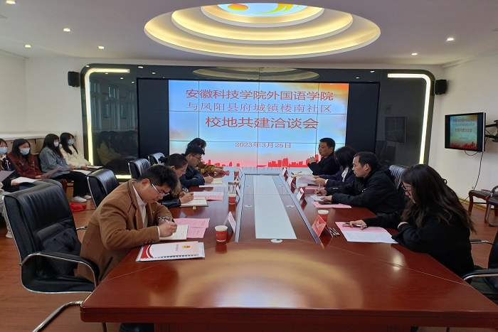 为促进校地合作,近日,外国语学院党委书记蔡为青、副书记张海亮、团委副书记宋兵兵、专职辅导员张薇薇以及学生党员、优秀团员代表一行15人,赴凤阳县府城镇楼南社区开展党团结对共建活动。凤阳县府城镇党委副书记李保胜、府城镇党委组织部部长方晓晓、楼南社区党总支书记马长顺、楼南社区团委书记王丹丹参加活动,活动由方晓晓主持。
