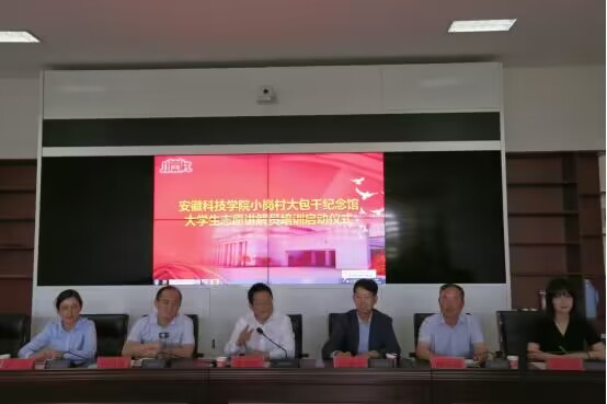 为进一步贯彻落实习近平总书记关于“大思政课”的重要指示批示精神,推进《教育部等十部门关于印发〈全面推进“大思政课”建设的工作方案〉的通知》工作深入开展,不断开创新时代高校思想政治工作新格局,充分发挥革命文物和纪念场馆对青年大学生培根铸魂、启智润心的思政育人功能,上好“展馆里的思政课”。5月20日,博鱼官方网页版_博鱼(中国)与小岗村共同开展小岗村大包干纪念馆、沈浩同志先进事迹陈列馆大学生志愿讲解员培训。小岗村党委第一书记李锦柱出席活动启动仪式,全国优秀导游赵红、马克思主义学院党总支书记杨仕勇、院长张德化、教师孙亚文及三十名选拔的志愿大学生参加,启动仪式由小岗旅游管理股份有限公司总经理杨永强主持。