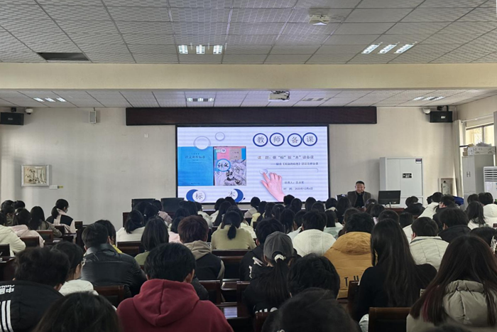 凤阳县实验中学教师王占发对人文学院师生的到来表示欢迎,并作《依“标”据“本”谈备课》专题教学指导讲座。他对凤阳县实验中学整体情况进行简要介绍,通过教学比赛实例讲解了教学实施过程中的十三条核心要点,指出教学要精益求精,教师不仅要有全局观念,还要注重细节,同时需要科学的融合现代教育技术的方法与理念。王占发以八年级《美丽的颜色》一课为例,详细向学生们演示了从语文新课程标准的解读到多种教学设计展示等整个备课流程。