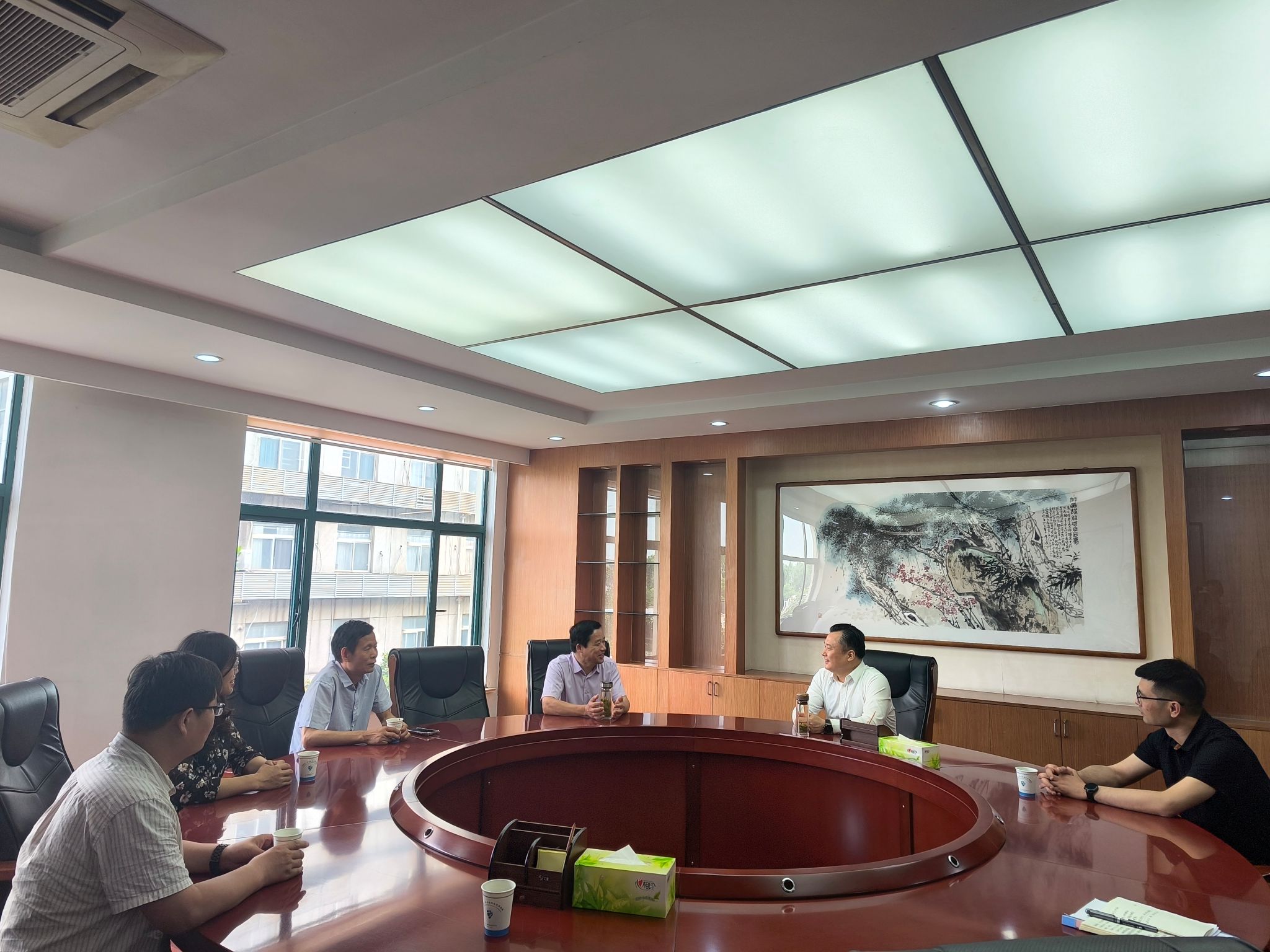 程启涛对程斌一行莅临淮南市经济技术开发区调研表示热烈欢迎,介绍了淮南市经济技术开发区的基本情况和重点发展领域。程斌介绍了学校和学院的基本情况,以及近年来在人才培养、学科建设和服务社会方面取得的发展成就。双方均表示淮南市经济技术开发区与博鱼官方网页版_博鱼(中国)具有广阔的合作空间,为双方高质量发展将会注入新动力、培育新引擎。