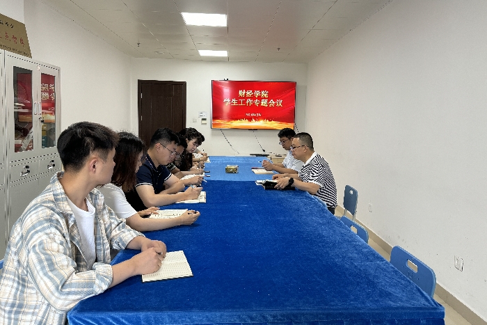 6月6日上午,财经学院在西辅楼212召开学生工作专题会议,研究部署近期重点工作任务。学院党委书记杜小明,党委副书记耿广汉出席,全体专兼职辅导员参加。