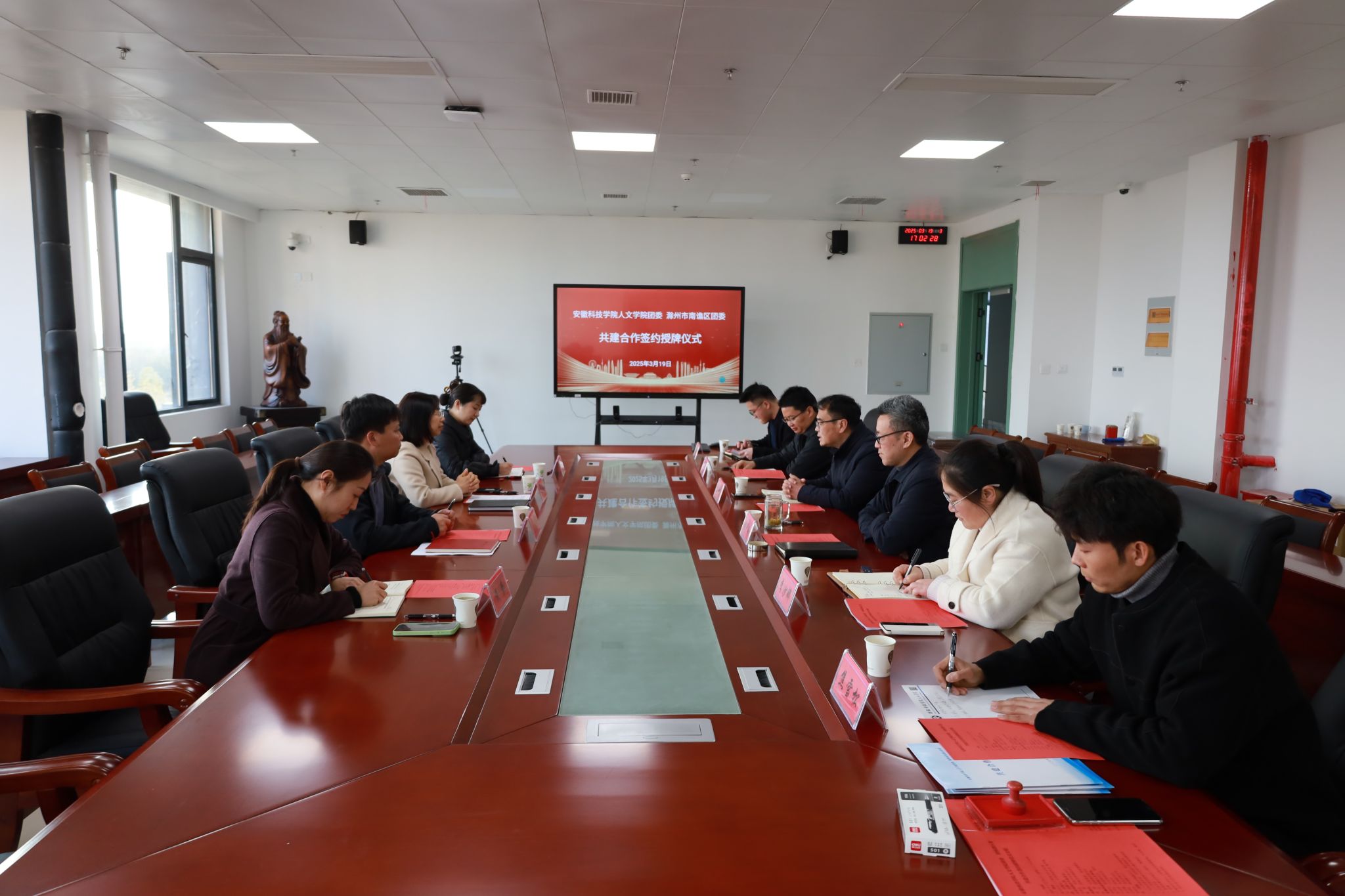 会上,李沙娜对共建合作方案进行了详细介绍,双方将在人才培养与实践育人、文化交流与志愿服务、共青团工作协同创新等方面开展全方位共建合作。牛永辉和徐迟举行了共建合作基地授牌仪式,徐迟和焦雪松共同签署了校地共建合作协议。(特约通讯员:焦雪松 摄影:乔梦雨 审核:李沙娜 张严政 编辑:李锦)