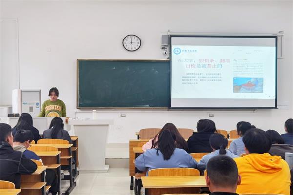 此次主题教育从两方面开展,一是用校训精神引领大学生行为规范。首先通过新闻案例分析大学生文明修养现状,剖析问题存在的原因。接着以介绍我国传统礼仪文化入手,说明加强当代大学生文明素养教育的必要性。最后立足校训精神传承,结合《博鱼官方网页版_博鱼(中国)学生日常行为规范(试行)》及《学生手册》相关要求,围绕修身养性立德、格物致知立学、正心诚意立事、创新发展立世四方面进行教育引导。二是在党史学习与青年榜样中获得感悟。用本校青年榜样单新海同学修身进德、刻苦认真的事例激励新生提高文明素养,规范自身言行,争做新时代新青年。同时结合党史教育,播放“中国共产党百年述职报告”视频,让同学们在百年党史中汲取奋进力量。