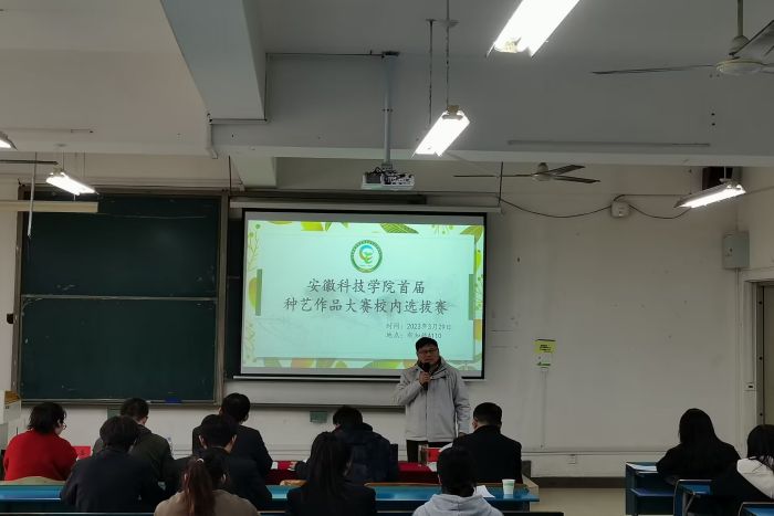3月29日,“博鱼官方网页版_博鱼(中国)首届种艺作品大赛暨全国高校种艺作品大赛校内选拔赛”在新知楼A110成功举办。教务处副处长、创新创业学院副院长高青海和农学院党委副书记张轶辉到场指导并致辞。