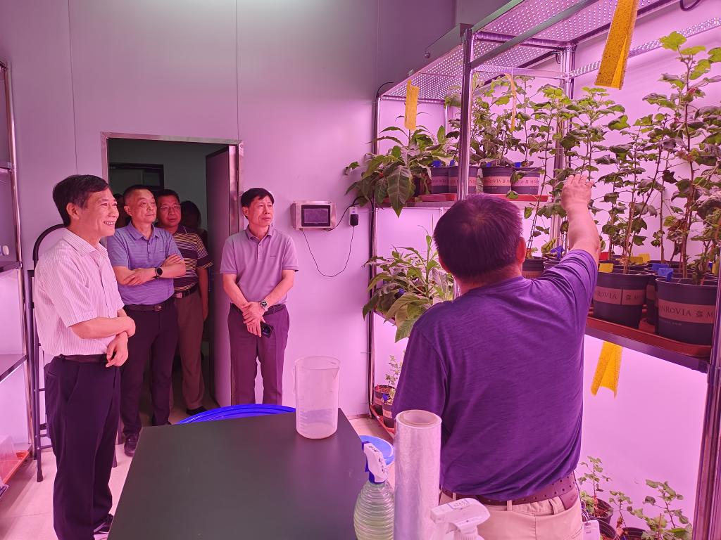 团队负责人教育部新世纪优秀人才支持计划黄先忠教授首先介绍了创新团队人员情况、团队定位、研究方向及目前主持的科研课题情况,同时如实反映了实验室面积不足、人手不够等运行过程中亟待解决的问题。随后时伟等仔细查看、了解了植物遗传生理、分子生物学和基因工程等实验室的建设情况。黄先忠表示该创新团队以水稻的遗传改良与利用为总体目标,以乡村振兴为契机,充分发挥人才和技术优势,科技强农,赋能粮食生产,为服务地方经济建设做出应有的贡献。