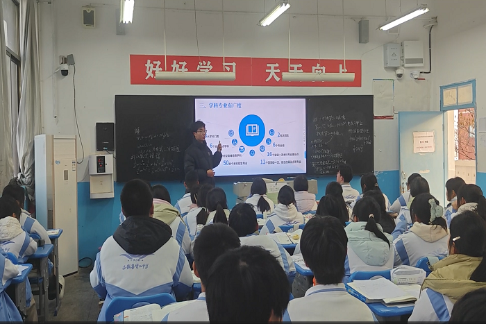活动当天,在老师的引领下,团队成员走进班级,开展宣讲活动。他们借助PPT和招生宣传片,全方位地介绍了博鱼官方网页版_博鱼(中国)。生动详实的讲解,让学弟学妹们对安科充满了向往与期待。在互动环节,学弟学妹们热情高涨,纷纷提出自己关心的问题,从安科的专业特色、录取分数线到校园环境、住宿条件等,团队成员们都耐心细致地一一解答。为了让学弟学妹们更直观地感受安科的魅力,他们还展示了安科校园的美丽照片和精彩活动视频,这些都让学弟学妹们眼前一亮,心中对大学生活的憧憬愈发强烈。