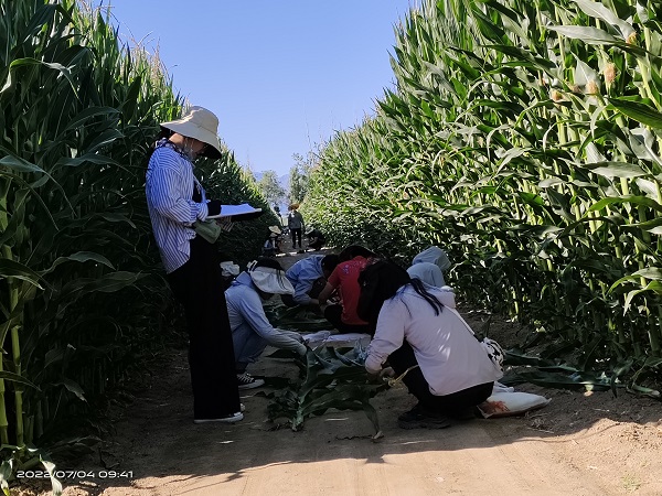 到达基地后,基地负责老师对实践团队成员开展了实践安全教育、分组并布置实践任务。在指导老师及师兄师姐的帮助下,团队成员扎实开展玉米科研实践。团队成员白天集体采集样本、测量叶面积、茎秆抗折断力、红光与远红光、干物质、叶片光合速率、光照强度,开展浇水冲肥等工作。晚上学习文献,认真记笔记,与师兄师姐一起交流心得。