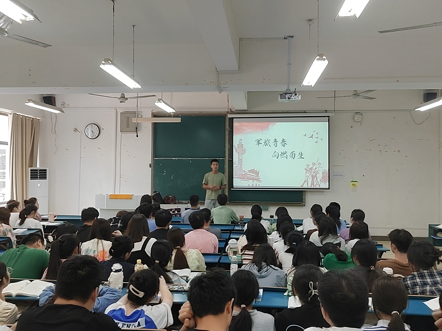 一个故事一堂课,一个典型一面旗。入伍政策宣传活动中,人文学院积极组织各班级观看军旅宣传视频,倾听不同的绿色青春带来的感动。并邀请学院退役复学同学开展退役士兵进课堂,带领同学们走进军营故事、感受军人风采,增强国防观念、鼓舞参军意愿,为同学讲述从军经历,从入伍时间、条件要求、优惠政策、退役待遇等方面详细讲解了大学参军入伍的各方面问题,并与同学交流互动,答疑解难。同时,人文学院辅导员深入寝室向毕业生宣传《大学生应征入伍“明白卡”》,进一步讲解大学生入伍流程和相关政策。