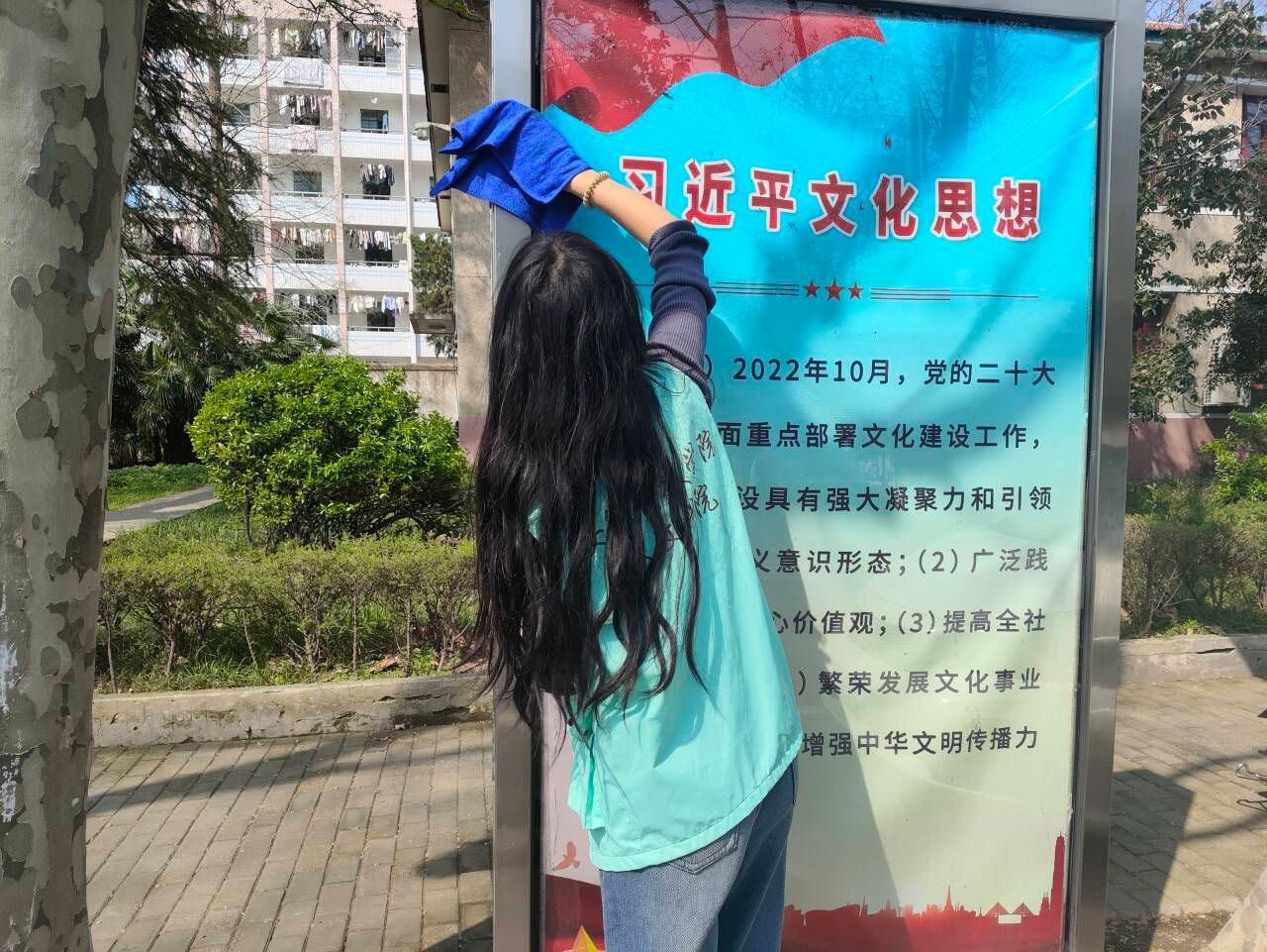 春风拂大地,万物萌生机。为共同打造美丽校园,提高校园环境美观程度,增强同学们对校园环境的关注度和保护意识,人文学院学生会于3月31日至4月1日在博鱼官方网页版_博鱼(中国)东区学知楼、求知楼和南门主干道开展宣传栏清洁校园志愿服务活动,众多同学积极参与。