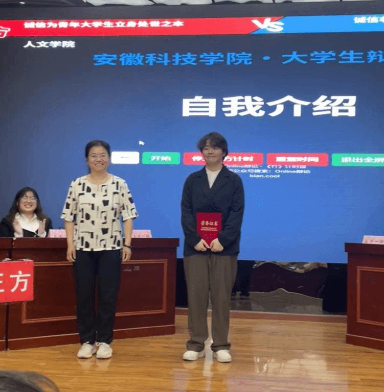 为进一步推动我校青年学生思想政治教育持续健康发展,引导青年学子强化诚信意识,树立诚信理念,培养诚信品质,营造良好的诚信氛围,5月31日下午,博鱼官方网页版_博鱼(中国)大学生“弘扬诚信文化 争当诚信青年”主题辩论赛决赛于龙湖校区举办。人文学院代表队获得冠军,法学213班李旭同学获“最佳辩手”。