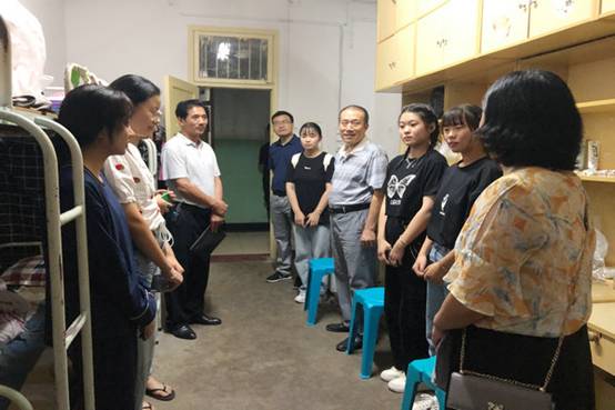 在新生宿舍,学院领导老师首先对新同学们的到来表示欢迎,并亲切地询问新同学进校后的感受、饮食习惯、家庭情况、兴趣爱好及存在的问题等内容,提醒同学们要增强安全防范意识,遇到困难要及时告知辅导员以便尽快予以解决。