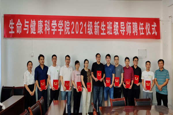 9月29日下午,生命与健康科学学院在学院会议室举行了2021级新生班级导师聘任仪式,学院党委副书记、副院长(主持工作)孙玉军,学院党委副书记、纪委书记彭丽萍,学院副院长钱立生、班级导师和全体专兼职辅导员参加会议,会议由彭丽萍主持。