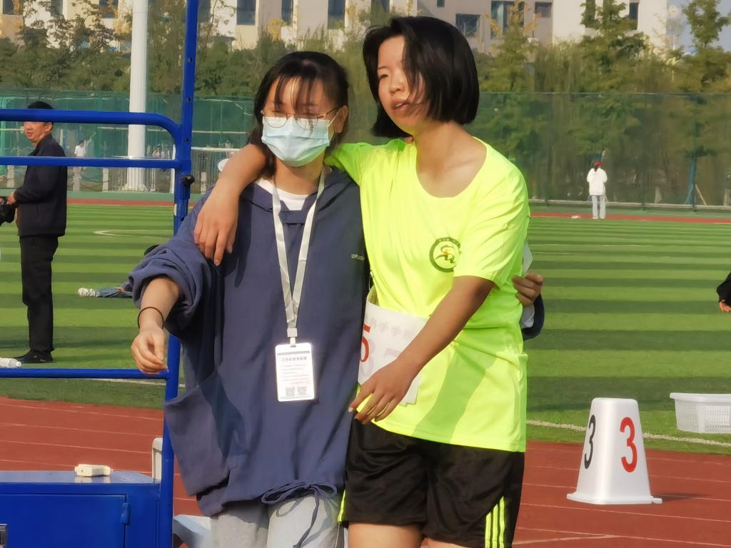 在缓冲区、跑道旁、检录处......都能看到学风建设部负责人马敬茹的身影。她带领运动员检录、帮助运动员赛前热身、搀扶刚刚结束比赛的运动员离开赛场等,她一丝不苟地完成分配的工作,确保运动员顺利完成比赛。在运动员的眼里,马敬茹就是他们坚实的后盾,让他们能够心无旁骛,全力以赴。