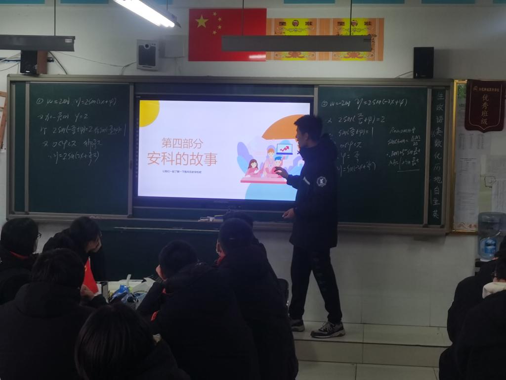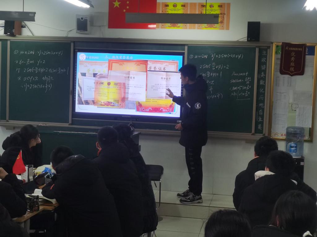 随后,实践团成员跟随老师到部分班级开展学校宣传介绍、发放宣传册,通过“我与安科的故事”向同学们介绍了博鱼官方网页版_博鱼(中国)的学习氛围、学校条件、历史渊源、校园风景、师资队伍、考研录取率等相关情况。随后与老师们一同张贴喜报,向母校报喜。